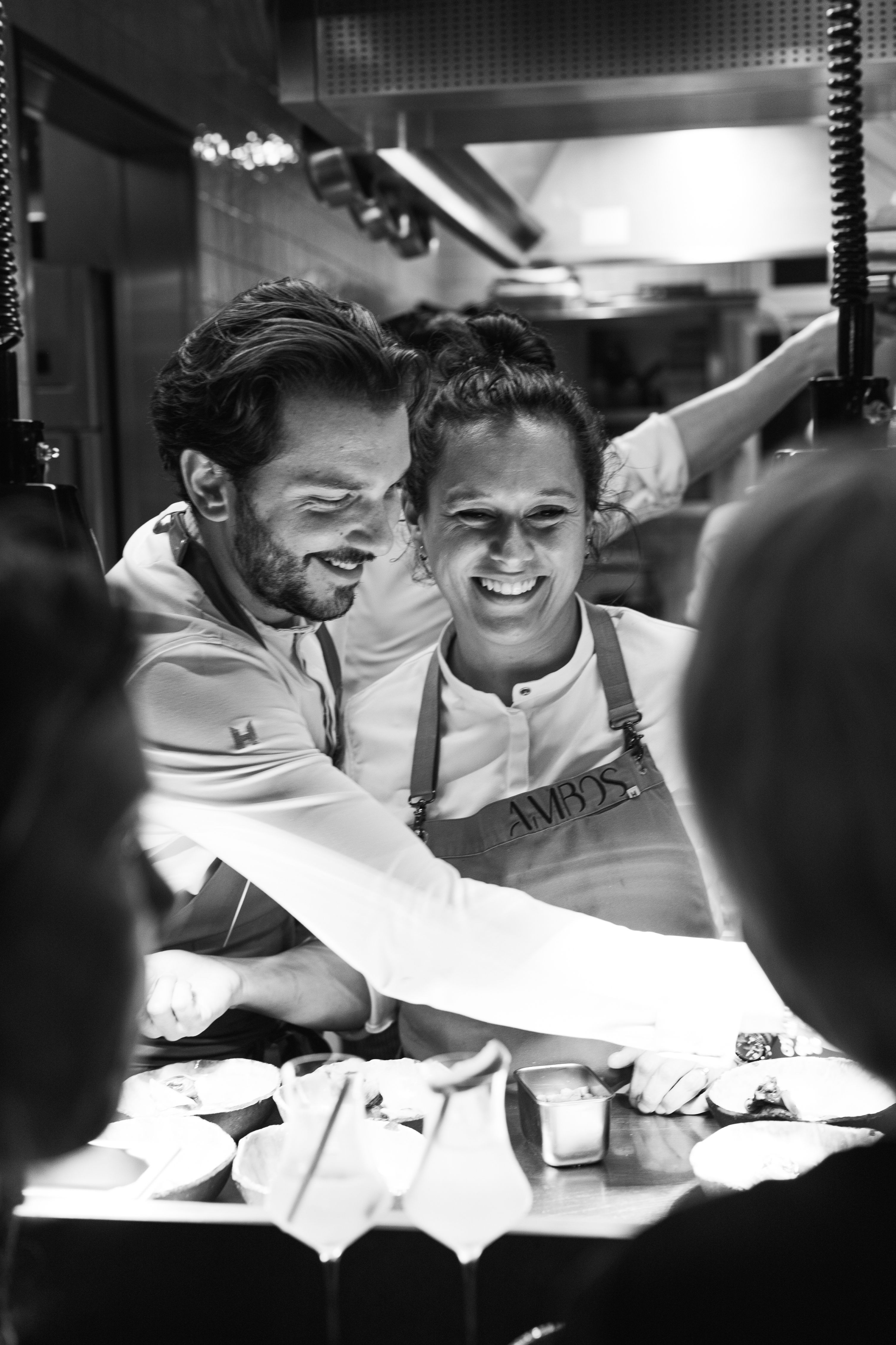 Après une vie de voyages, Cristina Chomet Tejeda et Pierre Chomet s’installent à Paris, dans le quartier du Luxembourg. À l’enseigne d’Ambos (« les deux » en espagnol), ils recevront dans un lieu chaleureux et ouvert pour une cuisine sans frontière.